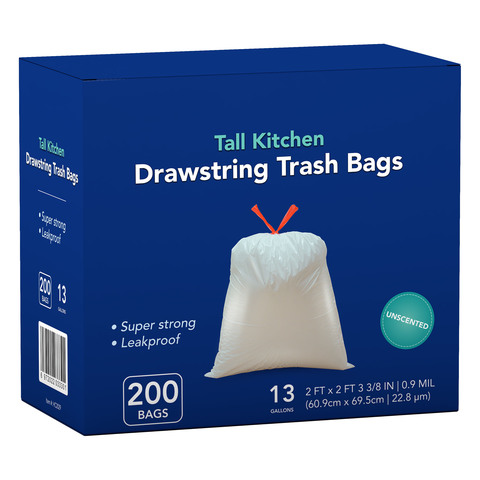 200 카운트 무향 13 갤런 키 큰 주방 쓰레기 봉투 사전 분리 초강력 누출 방지 튼튼한 PE 졸라매는 끈 쓰레기 봉투